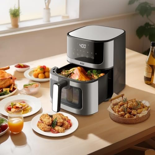 TRANSPARENT WINDOW: The classic 5 qt ASZ airfryer Visual features a transparent viewing window in front of basket, allowing you to monitor the cooking process of food visible in real-time and adjust the desired level of doneness and crispiness.