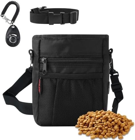 Dog Treat Pouch with Magnetic Closure, Treat Pouches for Pet Training, Large Dog Treat Training Pouch and Dog Clicker, Dog Training Treat Pouch Built-in Poop Bag Dispenser, Hands-Free Snack