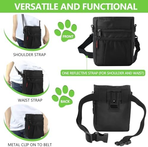 【3 Ways To Wear】Our dog treat pouch with 1 waist strap and 1 shoulder strap, It can be worn with a removable adjustable belt, a removable shoulder strap, and a sturdy metal belt clip, or simply attach the metal clip to your belt.You can choose the most comfortable and convenient way to wear it according to your preference.