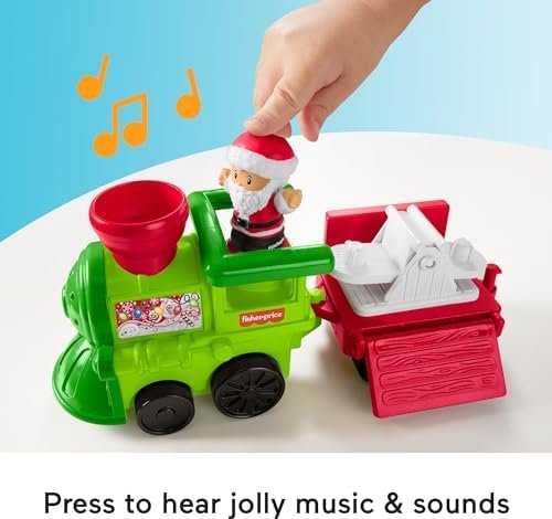 Fisher-Price Little People Toddler Toy Musical Christmas Train with Santa Elf & Reindeer Figures for Kids Ages 1+ Years