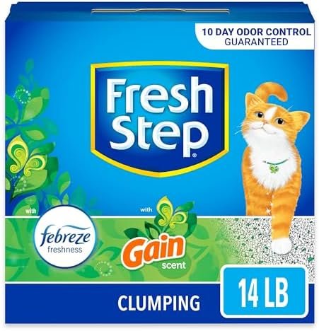 Fresh Step Clumping Cat Litter with Febreze Gain Scent, Long Lasting Odor Control Kitty Litter with Activated Charcoal, Low Dust Formula, 14 lb