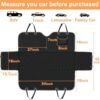 Suitable for most cars, SUVs: The latest upgraded version of the back seat car cover for dogs area of the backseat (Size: 54″ W x 55″ L) to comply with a number of the vehicle, such as Family car, SUV, Limousine, Not suitable for Toyota Tacoma, CR-V, Nissan Juke, The central zipper can be divided into 2 separate compartments, allowing your family and friends to sit together with your dogs on the backseat