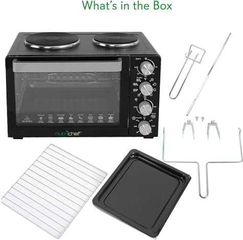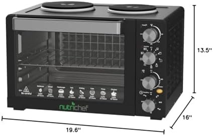 NutriChef 30 Quart Kitchen Convection Oven & 2 Burner Cooker – 1500 Watt Oven – 7 Cook Functions Rotisserie, Cook, Bake, Broil & More – Includes Baking Tray, Skewers & Handles – 19.6 x 16.0 x 13.5 IN