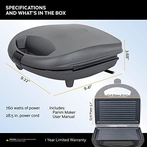 EASY TO STORE: The compact size allows for easy storing, suitable for most kitchens. Features a cool touch handle to protect you while handling the panini maker
