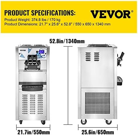 VEVOR Commercial Ice Cream Machine with Two 12L Hoppers Soft Serve Machine with 3 Flavors Commercial Ice Cream Maker 2500W Compressor Soft Ice Cream Machine with LCD Panel for Restaurants Snack Bar